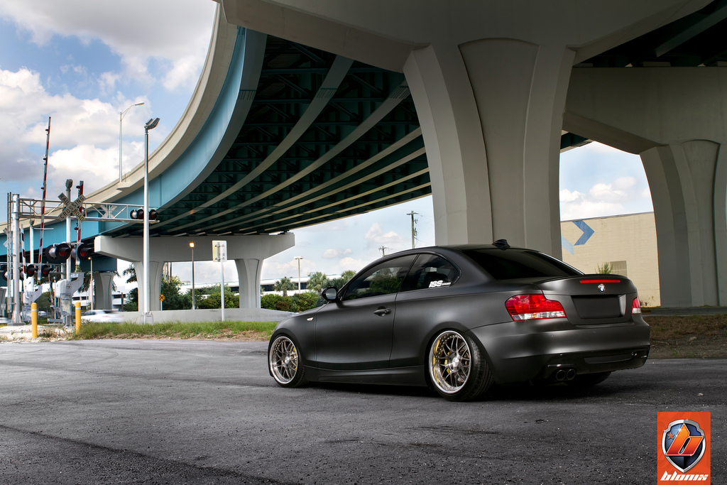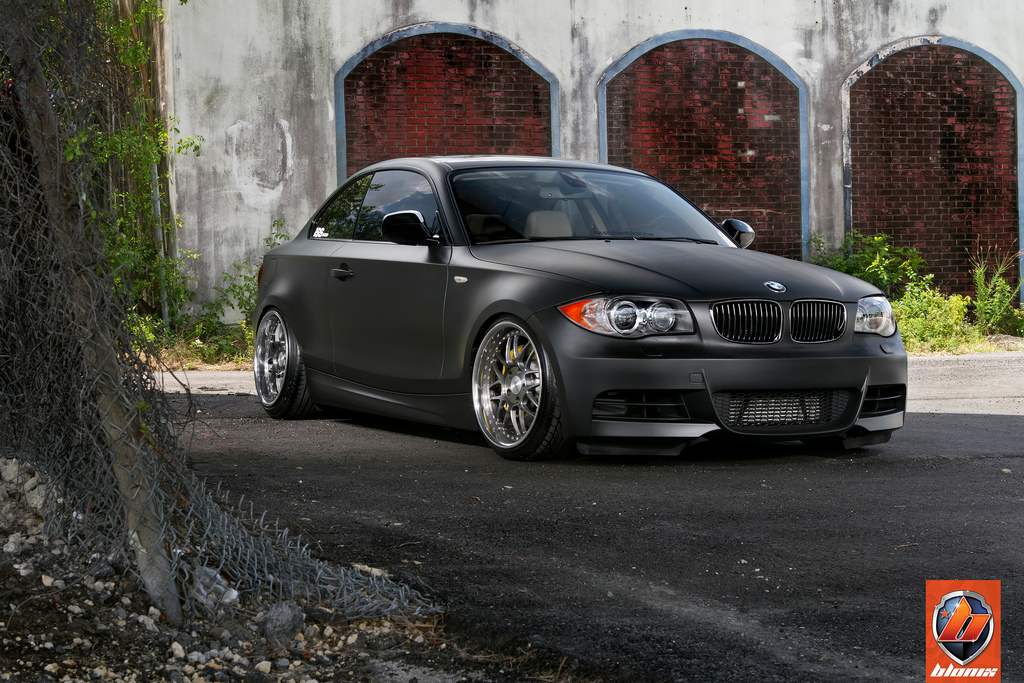 One of my consistent clients called me up and told me they have a different type of car to shoot, my mind was going in circles trying to figure out what it was. On the way to meet with the end customer, my client calls me to ask if I know of a dark location to shoot this special car. As my adrenaline started pumping, Carlos, owner of the car called me and said surprise I am right next to you on the highway. When I look over this crazy looking matte black BMW 135 stanced to kill is looking right over at me screaming “Photoshoot me!”. Now this matte black BMW 135 is like no other from the slammed stance to the perfect wheel combination color/fitment setup I knew there would be a lot of jealous people viewing my profile within the next couple of days.