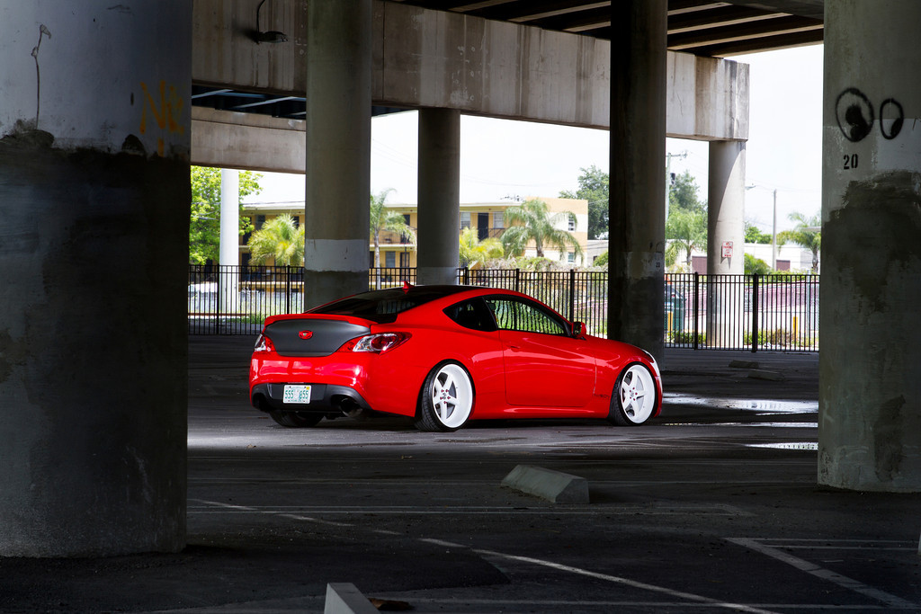 Spiderman left us his Hyundai Genesis Coupe 2.0 Turbo with Stitched Production for a photoshoot session while he saved the world. The good news was that we found a spot he could hang upside down and watch us do our magic while he waited! Introducing K3 Projekt Wheels slammed Gen coupe sporting a set of their Projekt 1 20″ wheels in a custom White complete wheel setup. Luckily it was a gorgeous day for a photoshoot, check out the pictures and follow us on: