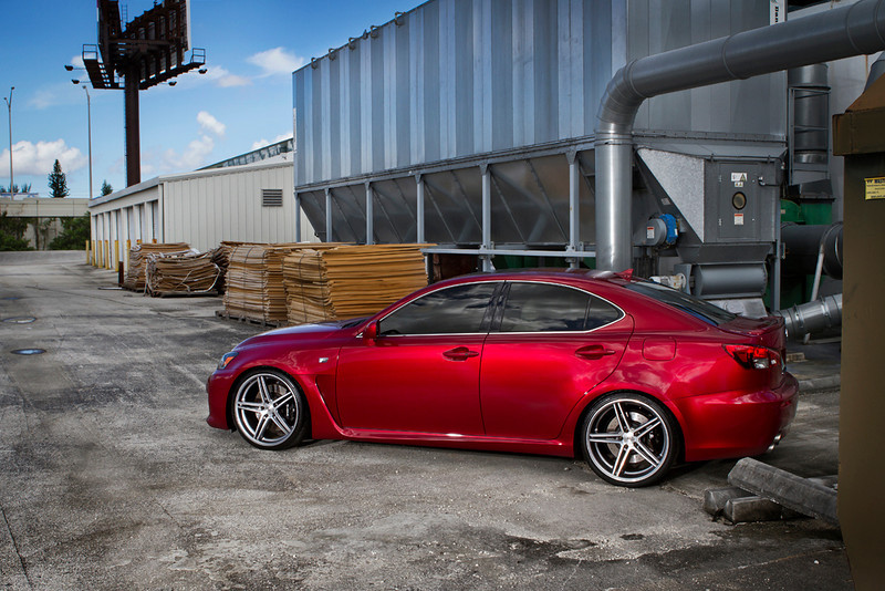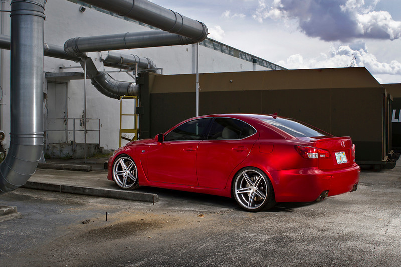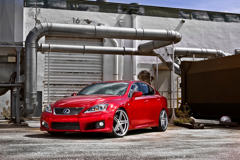 This Lexus IS-F was a last minute photoshoot for K3Porjekt Wheels with an amazing red color car. Lexus really has knocked it out of the park with this red color and in the sun has a great shine. The warehouse we found was right off the expressway but the sun was coming in and out of the clouds, making it difficult to photograph. Take a look at the pics below: